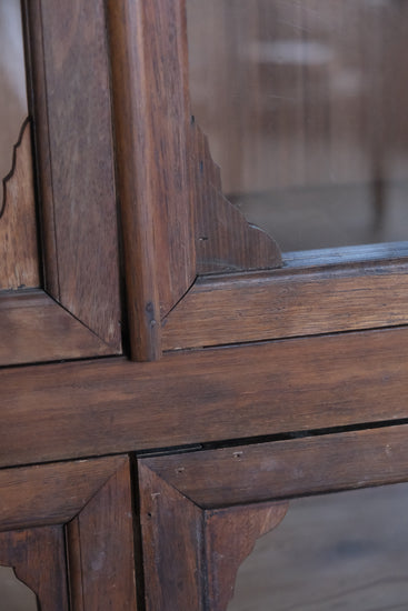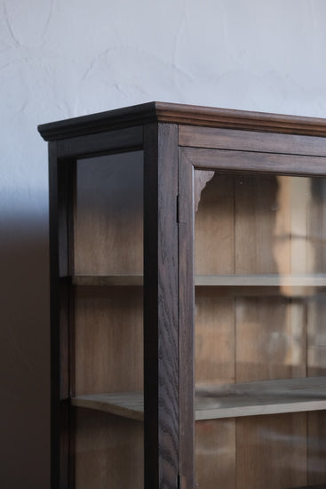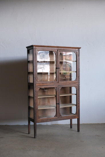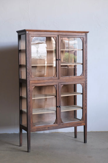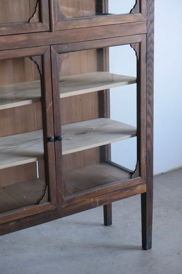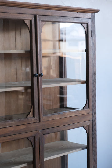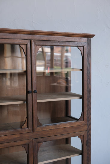 4本脚のケビントタイプで上下観音開きのガラス扉、細かな装飾があるこのようなデザインの家具は本当に希少で、唯一無二の佇まいが感じられます。