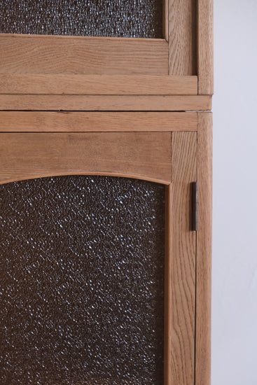 Rのきいた建具デザインと古いダイヤガラスが非常にマッチしています。
