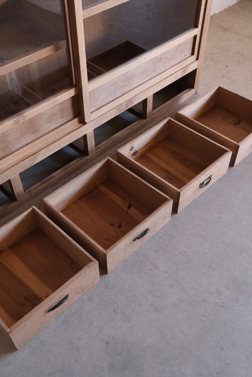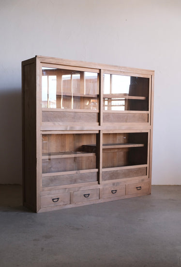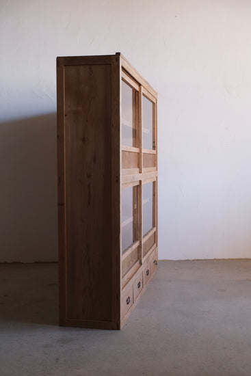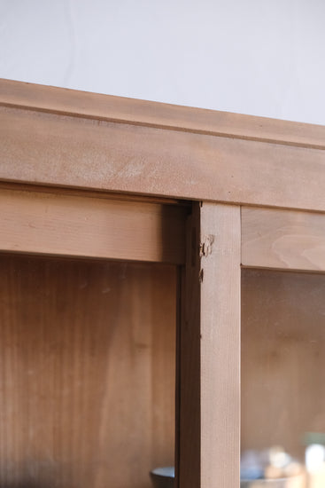 この手の水屋箪笥では珍しい建具のデザインをしており、