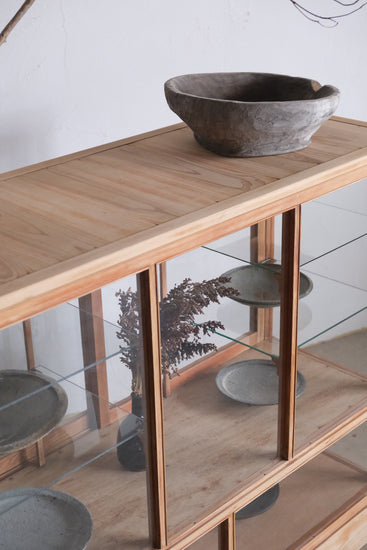 現状棚板にしているガラスはもともと付属していたものですが、少し不安定な為必要な方は交換も可能です。(別途ガラス代がかかります。)