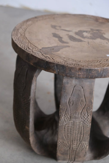 丸みを帯びた彫刻のようなデザインが美しいバガ族のスツール。