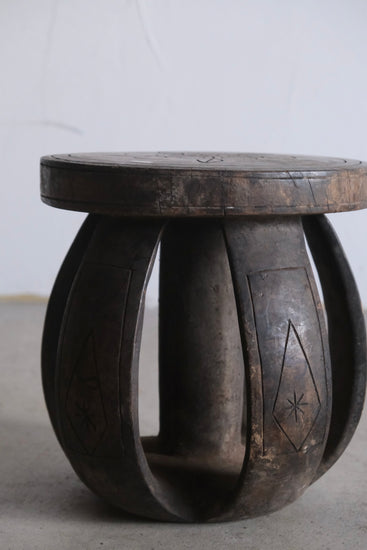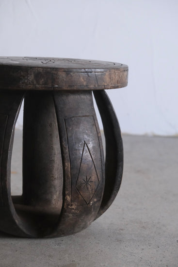 丸みを帯びた彫刻のようなデザインが美しいバガ族のスツール。