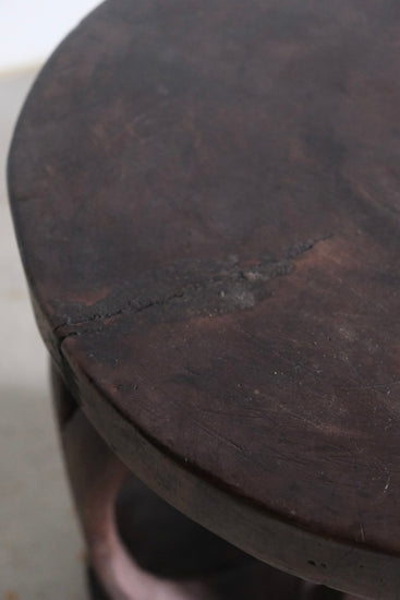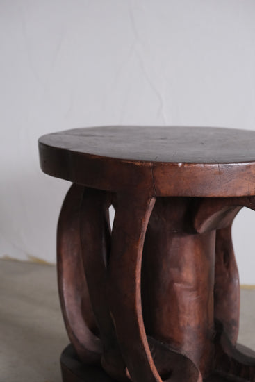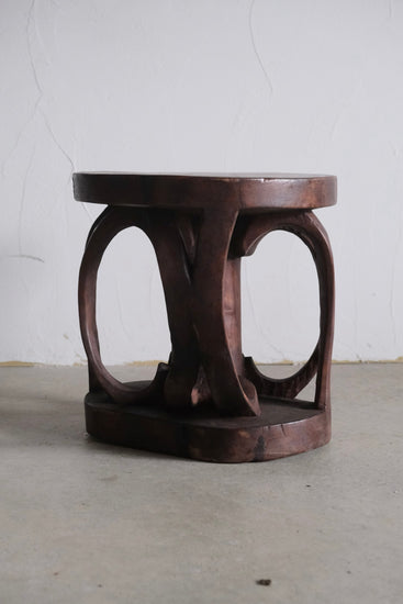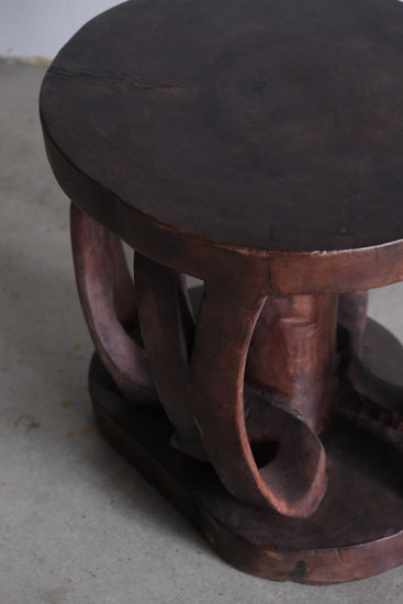 丸みを帯びた彫刻のようなデザインが美しいバガ族のスツール。このサイズはコーヒーテーブルとしても使用できるサイズ感です。