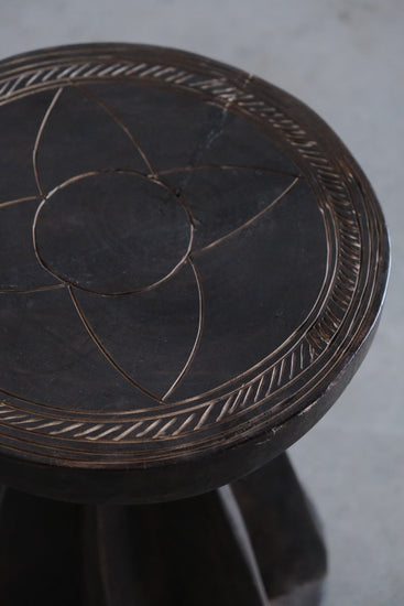まるで星型のような面白い形に切り出されたマレンカ族のスツール。重厚感と安定感があり、花台やスツールとしてご使用いただけます。