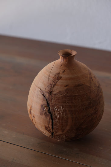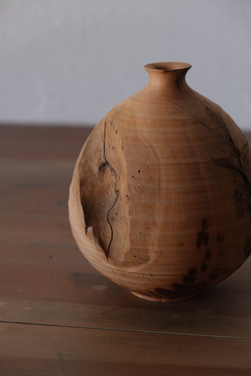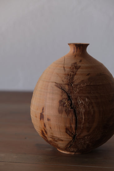 駒田さんの作品は自然の中で培われた節や割れ、杢目などの木が持つ個性に価値を見出し、それらを活かした器づくりをしています。