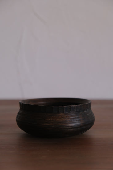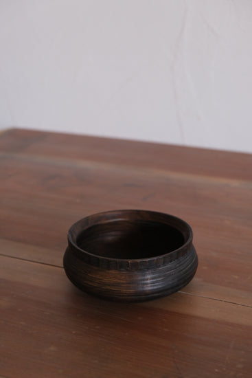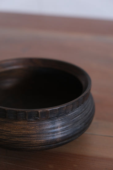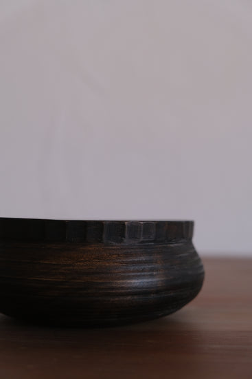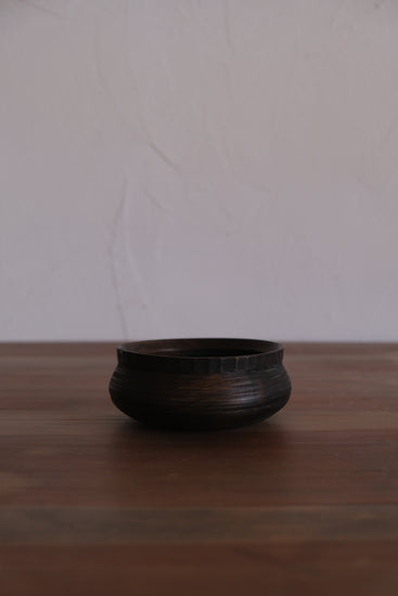 駒田さんの作品は自然の中で培われた節や割れ、杢目などの木が持つ個性に価値を見出し、それらを活かした器づくりをしています。
