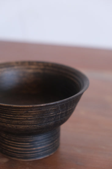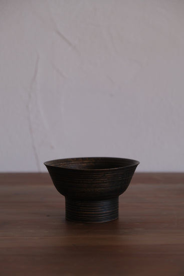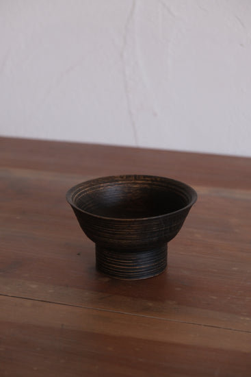 駒田さんの作品は自然の中で培われた節や割れ、杢目などの木が持つ個性に価値を見出し、それらを活かした器づくりをしています。