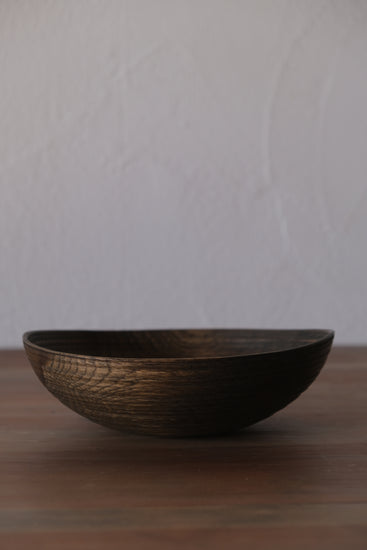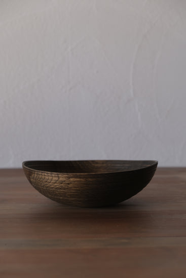 駒田さんの作品は自然の中で培われた節や割れ、杢目などの木が持つ個性に価値を見出し、それらを活かした器づくりをしています。