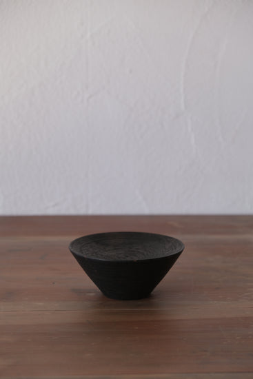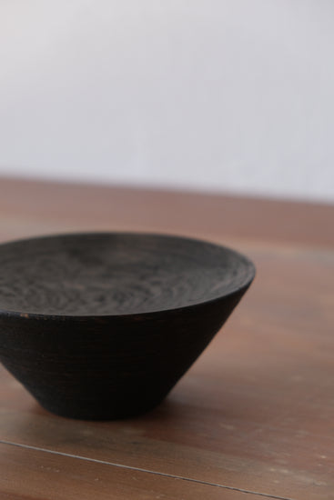 駒田さんの作品は自然の中で培われた節や割れ、杢目などの木が持つ個性に価値を見出し、それらを活かした器づくりをしています。