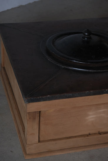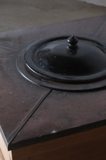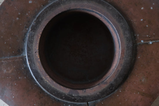 蓋部分は陶器、火鉢部分は鉄製、天板は銅製と思われ、非常に重厚感が漂います。