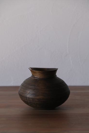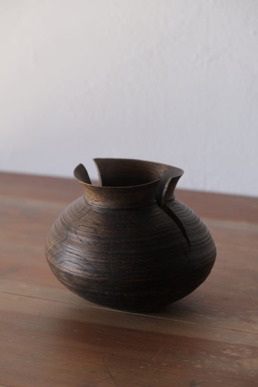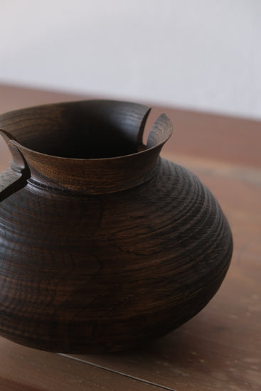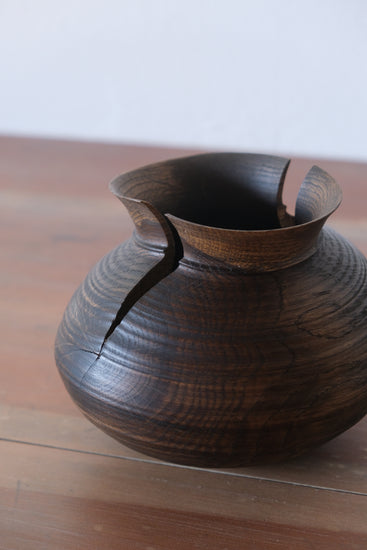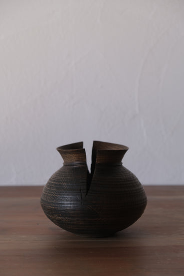 駒田さんの作品は自然の中で培われた節や割れ、杢目などの木が持つ個性に価値を見出し、それらを活かした器づくりをしています。