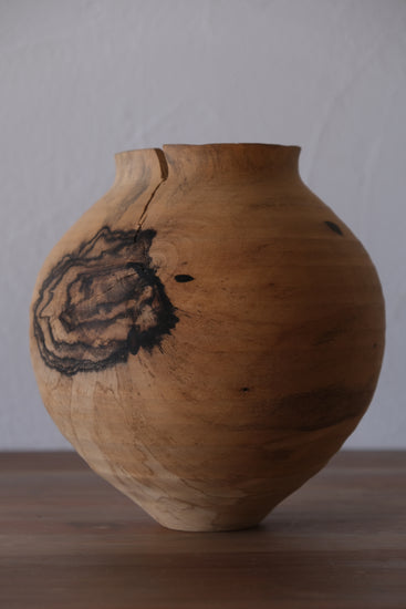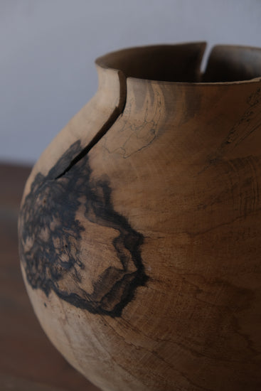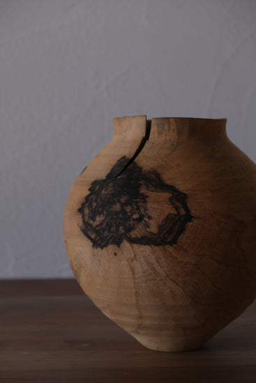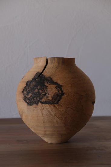 駒田さんの作品は自然の中で培われた節や割れ、杢目などの木が持つ個性に価値を見出し、それらを活かした器づくりをしています。