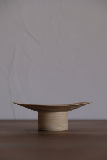 駒田さんの作品は自然の中で培われた節や割れ、杢目などの木が持つ個性に価値を見出し、それらを活かした器づくりをしています。