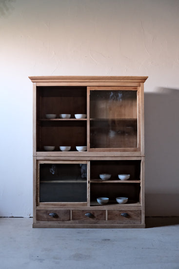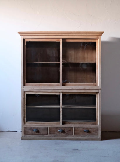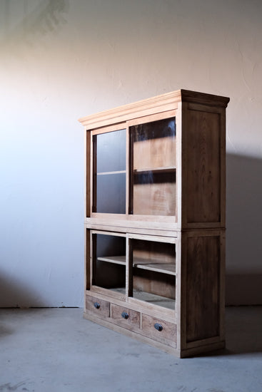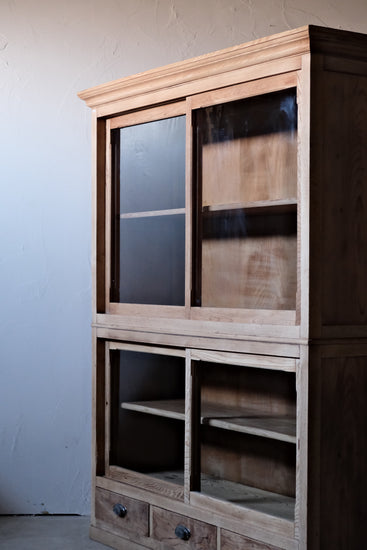 2段重ねのガラス戸棚。