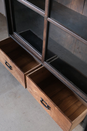 材・造り・雰囲気、どれをとっても一級品のガラス戸棚です。