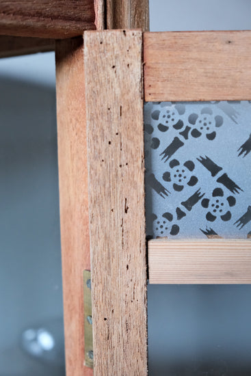 前面の模様の入ったガラスと建具の組み合わせが美しさを際立たせています。