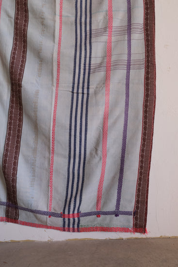 カンタキルトとは、インドの伝統的な刺し子布であり、古いサリー(女性の衣服)やドウティー(男性の腰布)を再利用してつくられています。