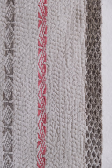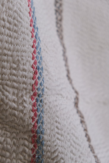 カンタキルトとは、インドの伝統的な刺し子布であり、古いサリー(女性の衣服)やドウティー(男性の腰布)を再利用してつくられています。