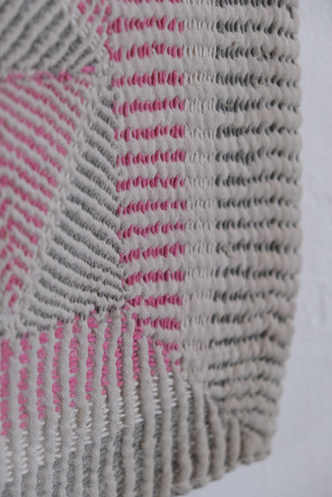 無地の布をベースに縫い目によってデザインを彩るという途方もない作業の末に仕上がったクラフトマンシップの光る一枚です。