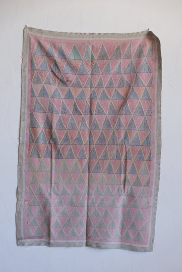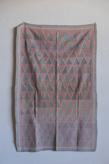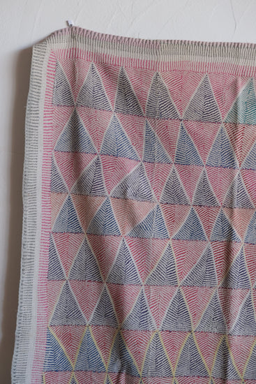 カンタキルトとは、インドの伝統的な刺し子布であり、古いサリー(女性の衣服)やドウティー(男性の腰布)を再利用してつくられています。