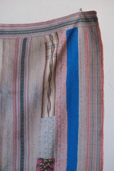 カンタキルトとは、インドの伝統的な刺し子布であり、古いサリー(女性の衣服)やドウティー(男性の腰布)を再利用してつくられています。